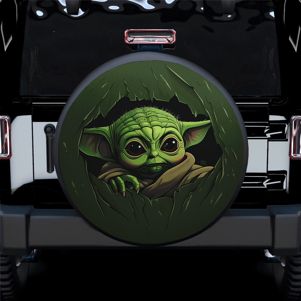 Baby Yoda Peeking Over Car Spare Tire Cover