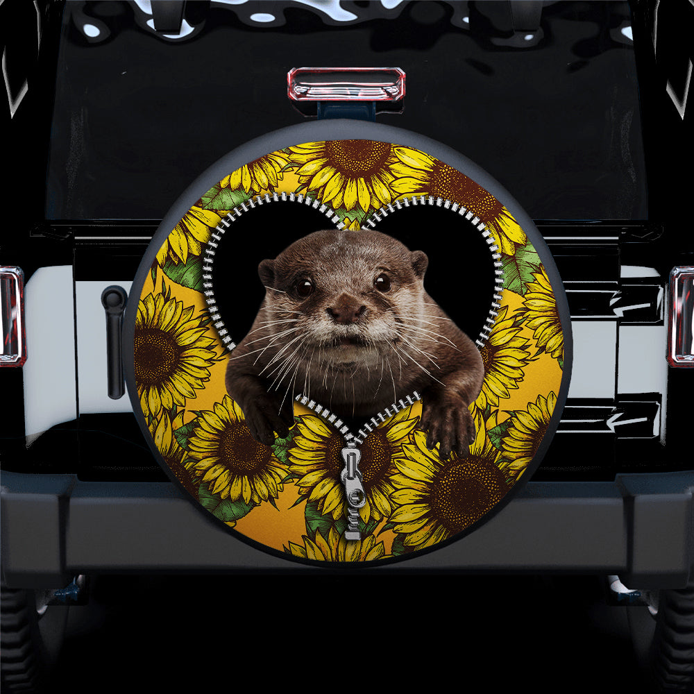 Beaver Sunflower Zipper Car Spare Tire Cover