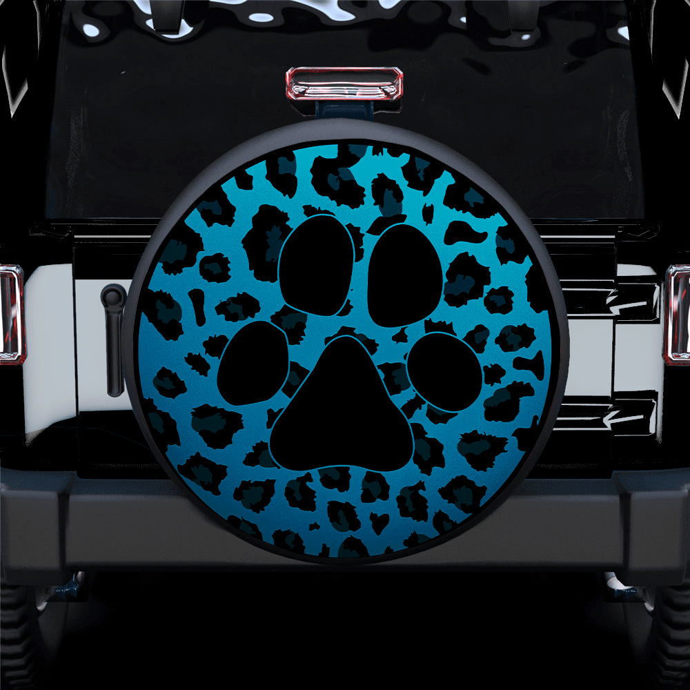 Blue Cute Dog Paw Cheetah Leopard Jaguar Pattern Jeep Car Spare Tire Cover