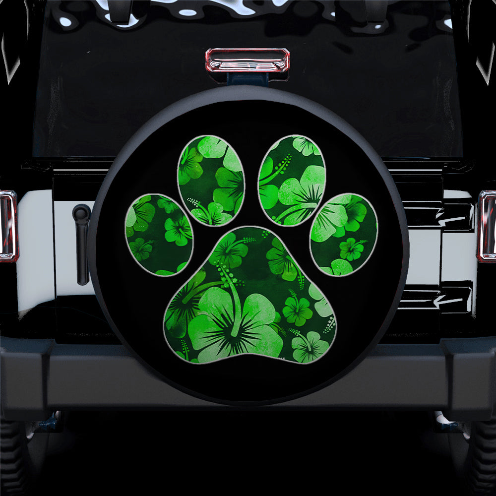 Green Paw Print Hawaiian Hibiscus Car Spare Tire Cover