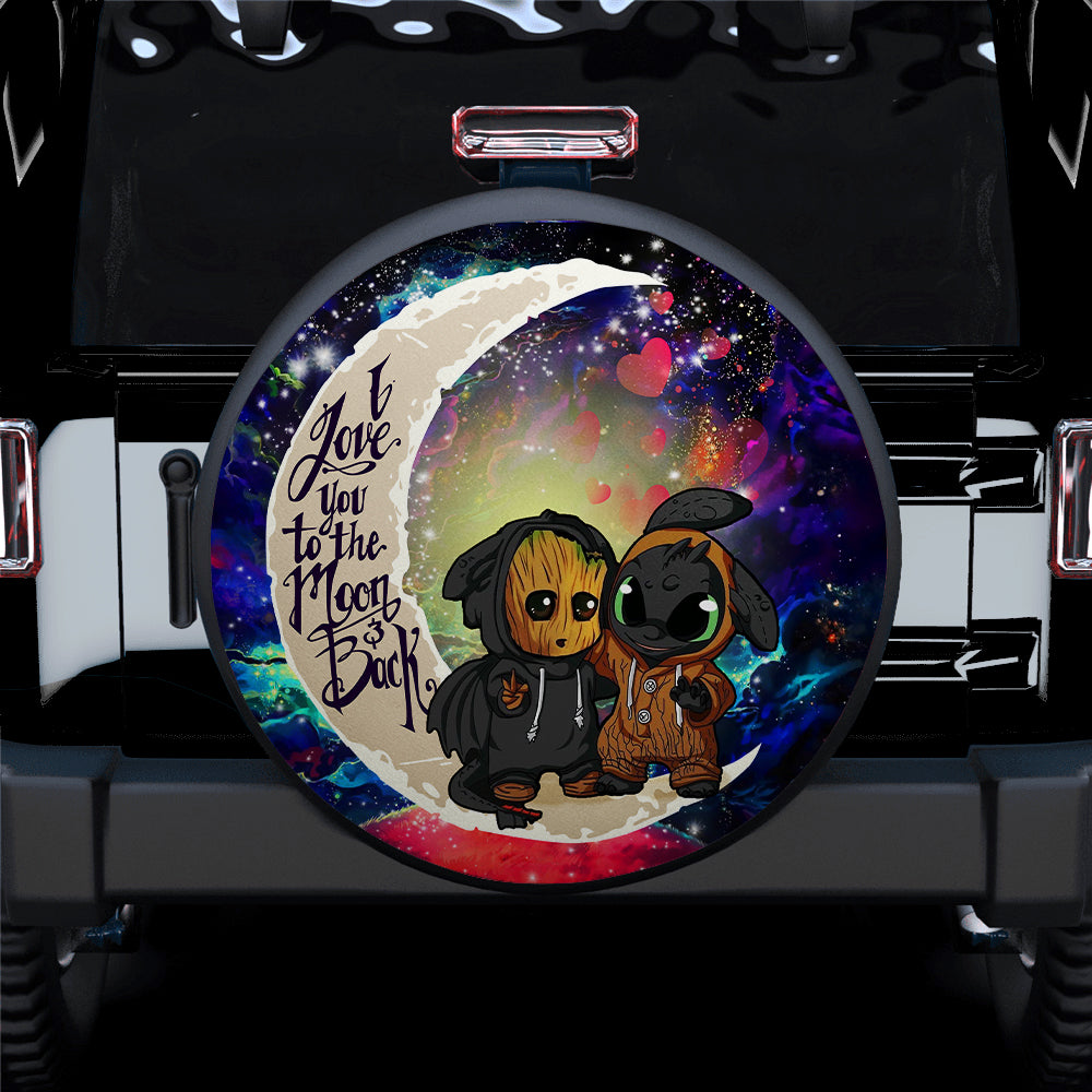 Groot And Toothless Love You To The Moon Galaxy Car Spare Tire Cover
