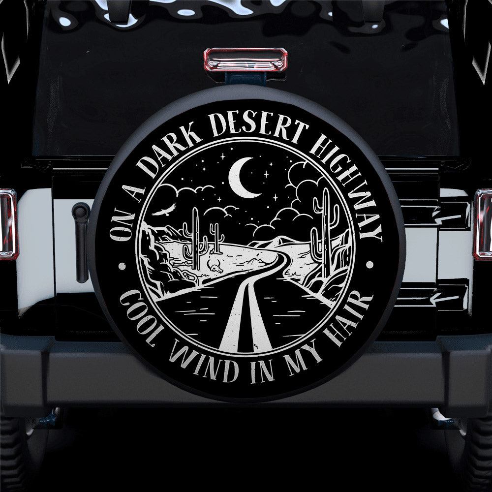 On A Dark Desert Highway B&W Car Spare Tire Cover