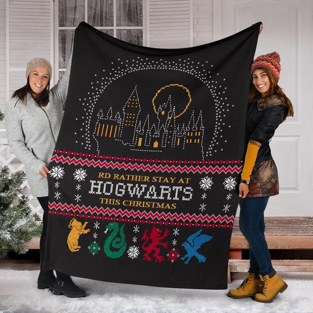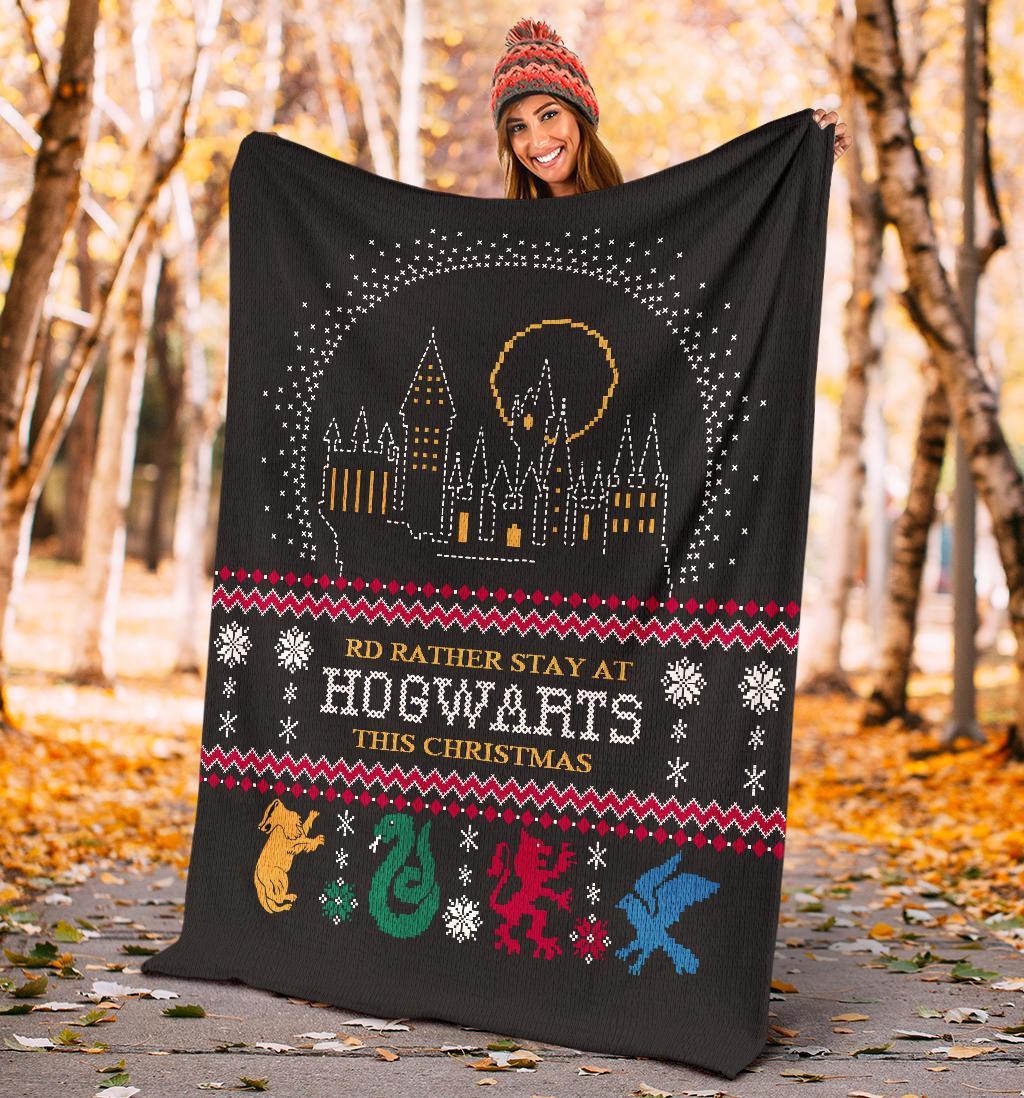 Harry Potter Rd Rather Stay At Hogwarts Ugly Christmas Custom Blanket Home Decor