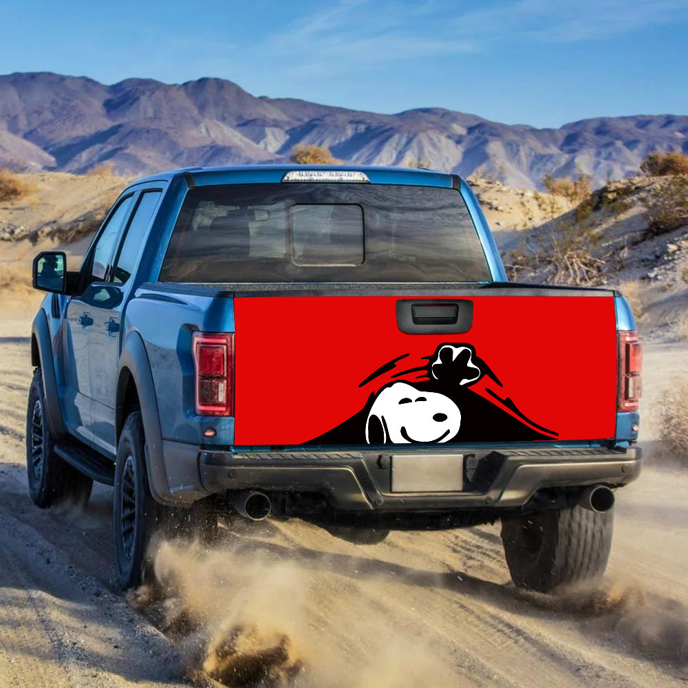 Snoopy Peek Under The Blanket Red Truck Tailgate Decal Sticker