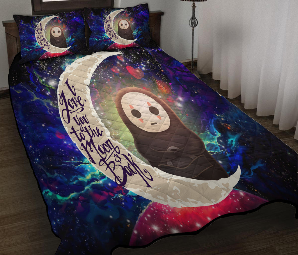 Cute No Face Ghibli Love You To The Moon Galaxy Quilt Bed Sets
