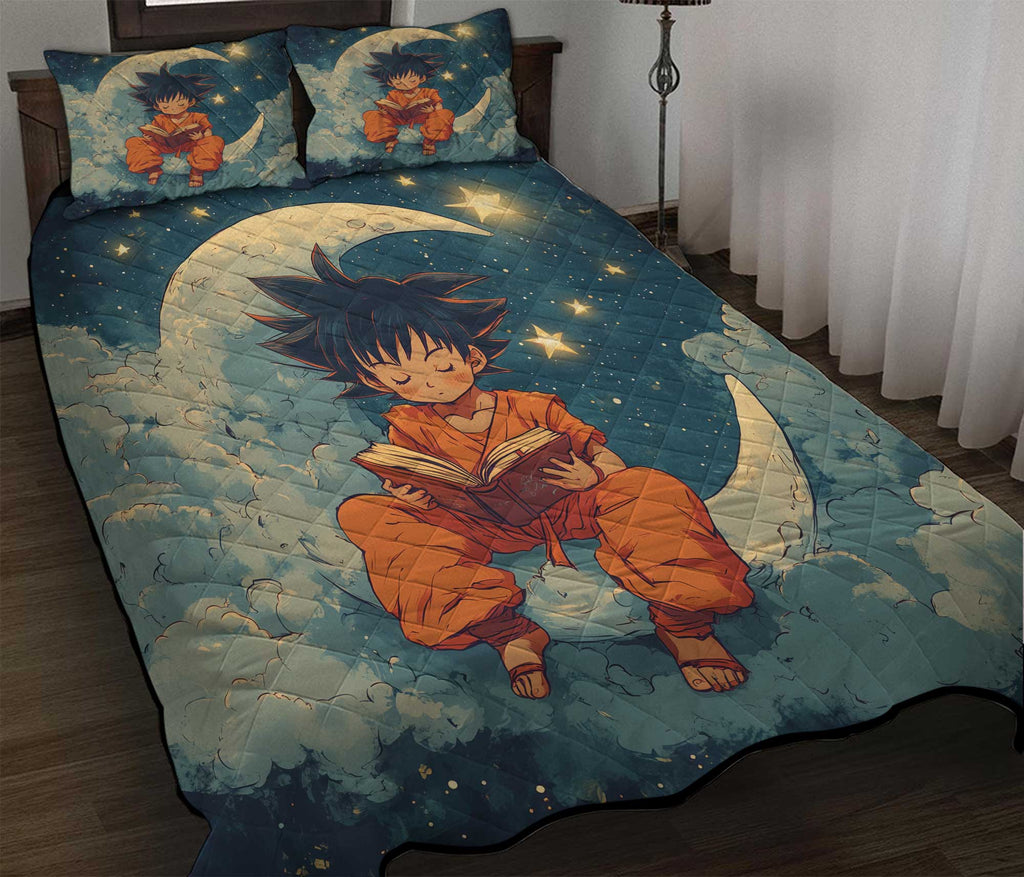 Goku 1 Reading On A Crescent Moon Quilt Bed Sets