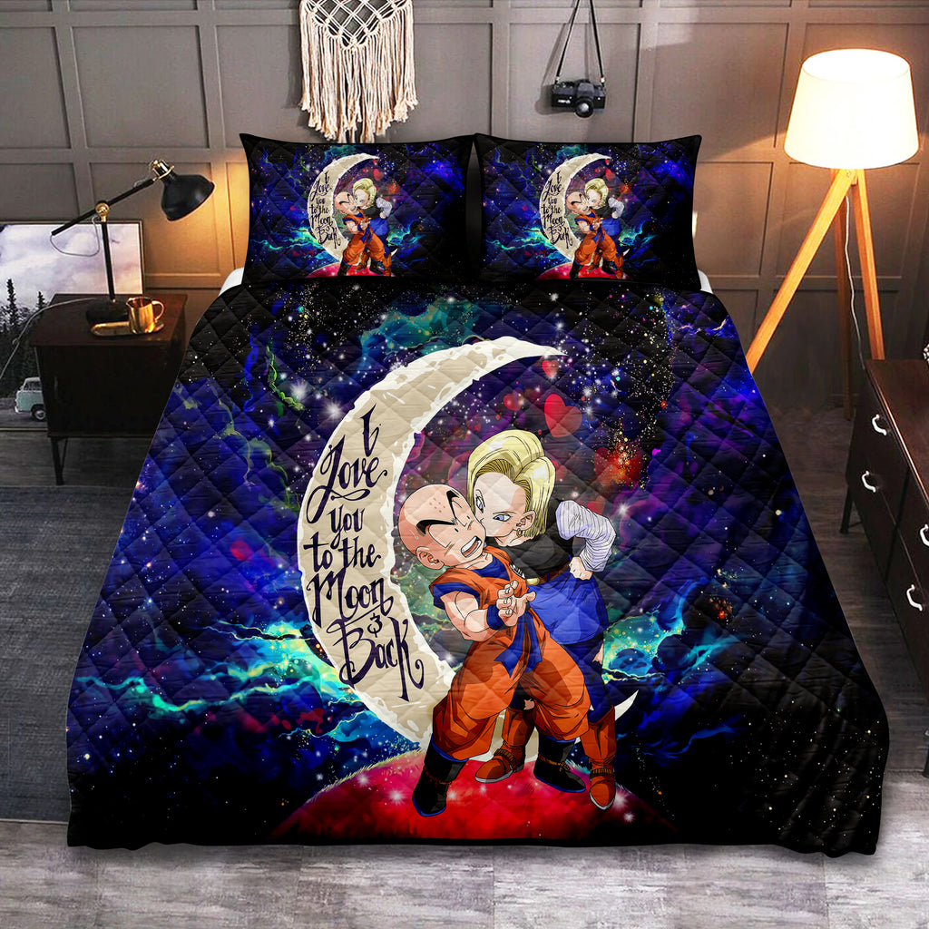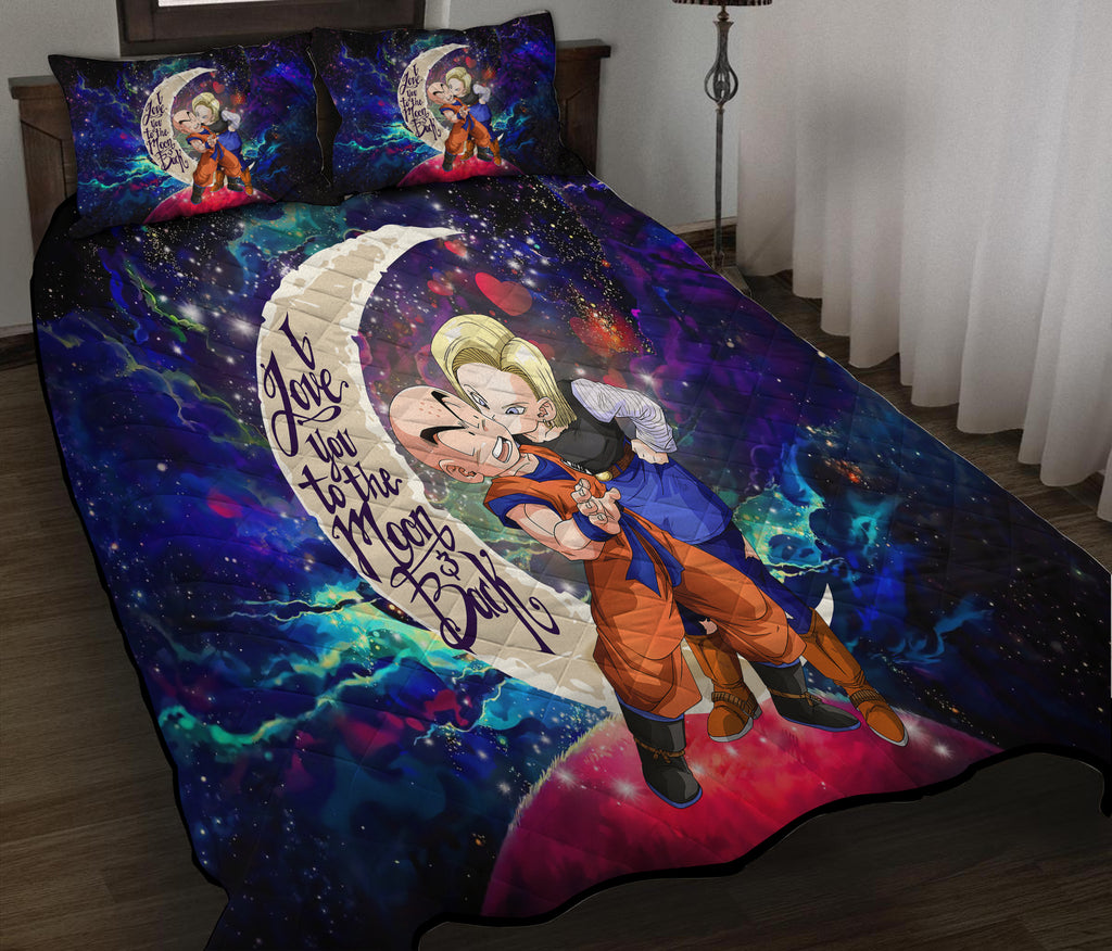 Krillin And Android 18 Dragon Ball Love You To The Moon Galaxy Quilt Bed Sets