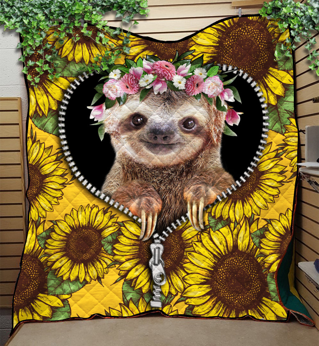Cute Sloth Sunflower Zipper Quilt Blanket