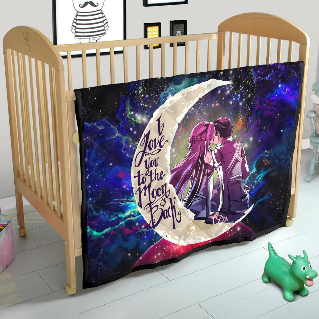 SAO Sword Art Online Asuna Kirito Love You To The Moon Galaxy Quilt Blanket