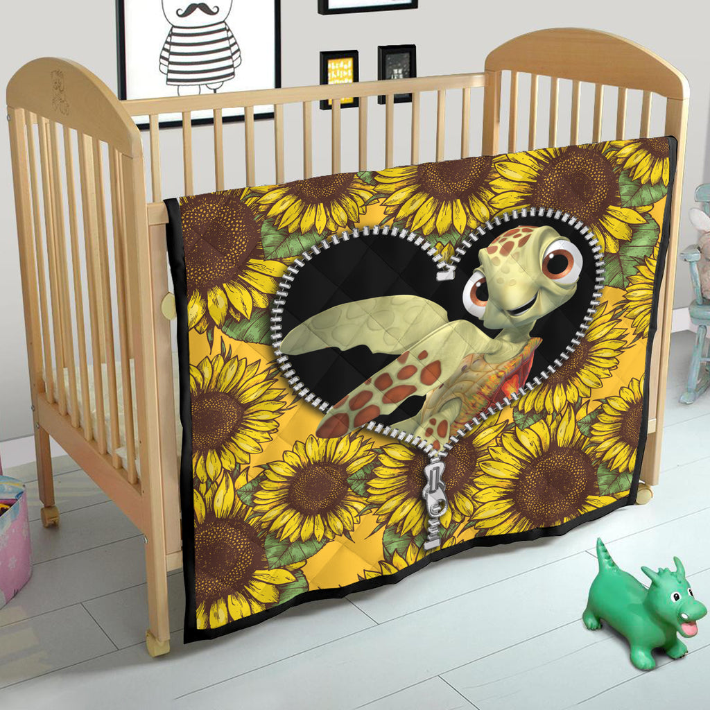 Turtle Sunflower Zipper Quilt Blanket