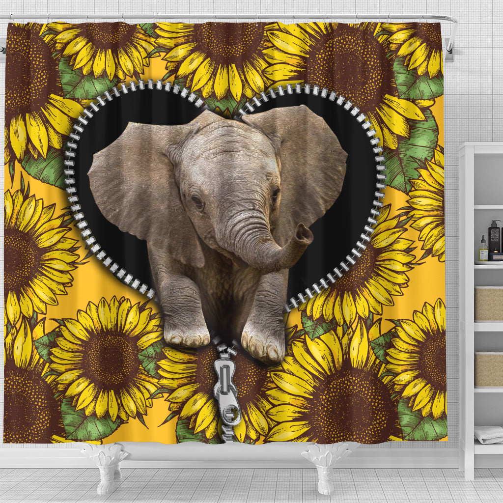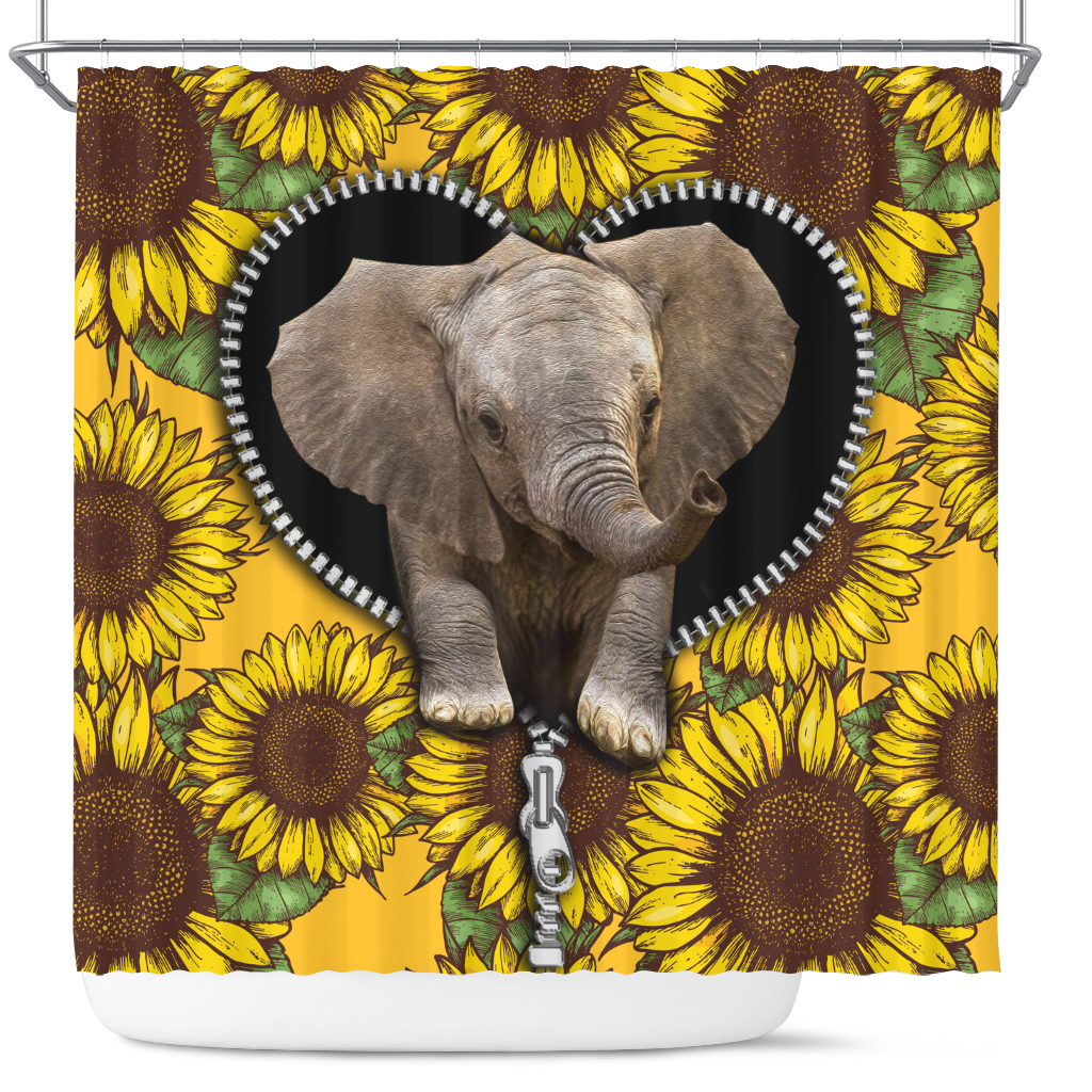 Cute Baby Elephant Sunflower Zipper Shower Curtain