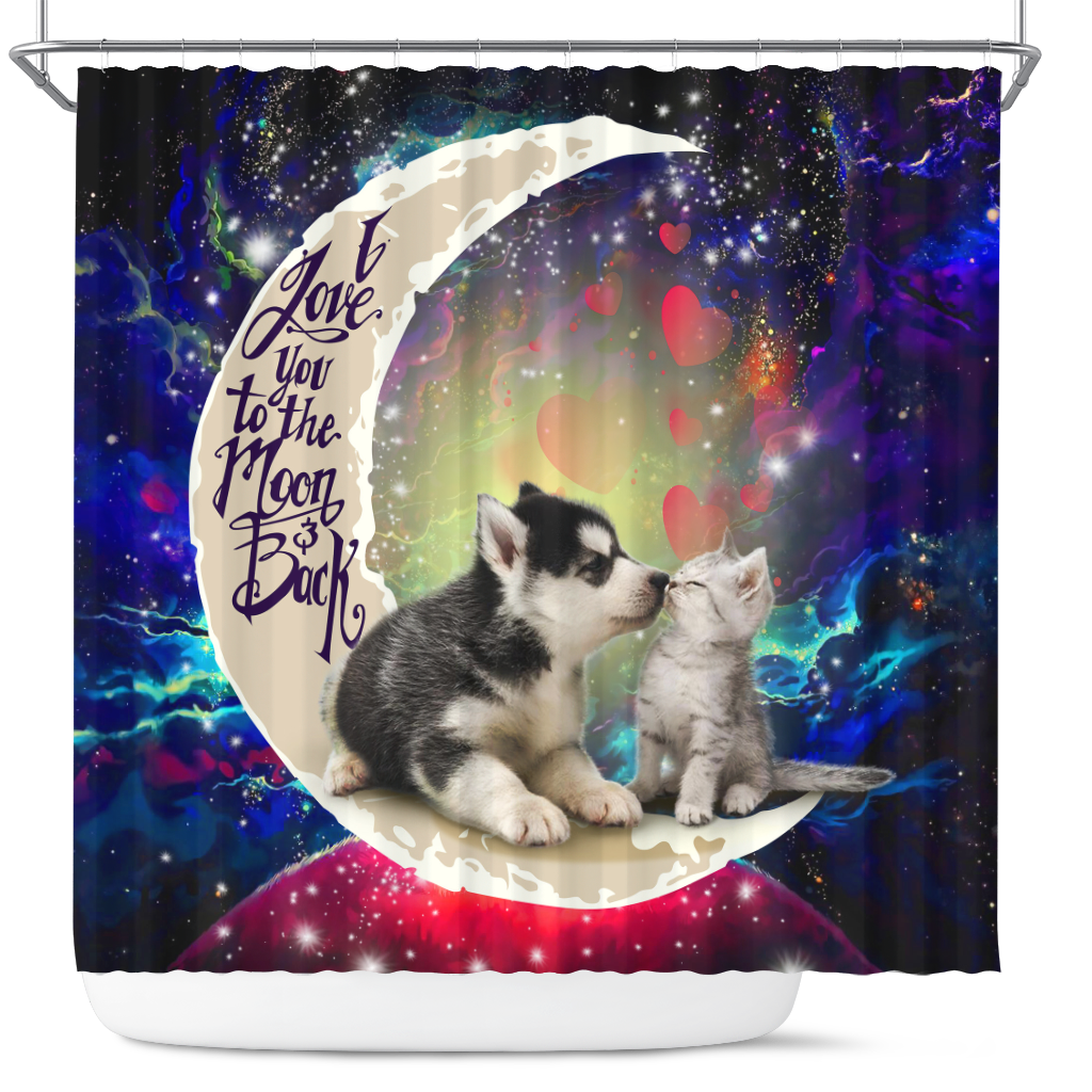 Cute Couple Husky And Cat Love You To The Moon Galaxy Shower Curtain