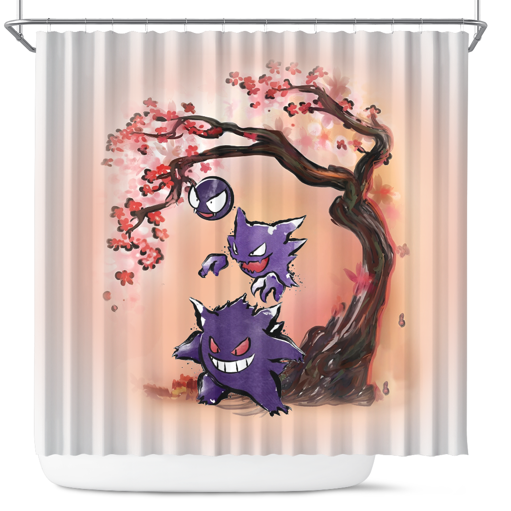 Gengar Ghost Cherry Blossom Japan Shower Curtain