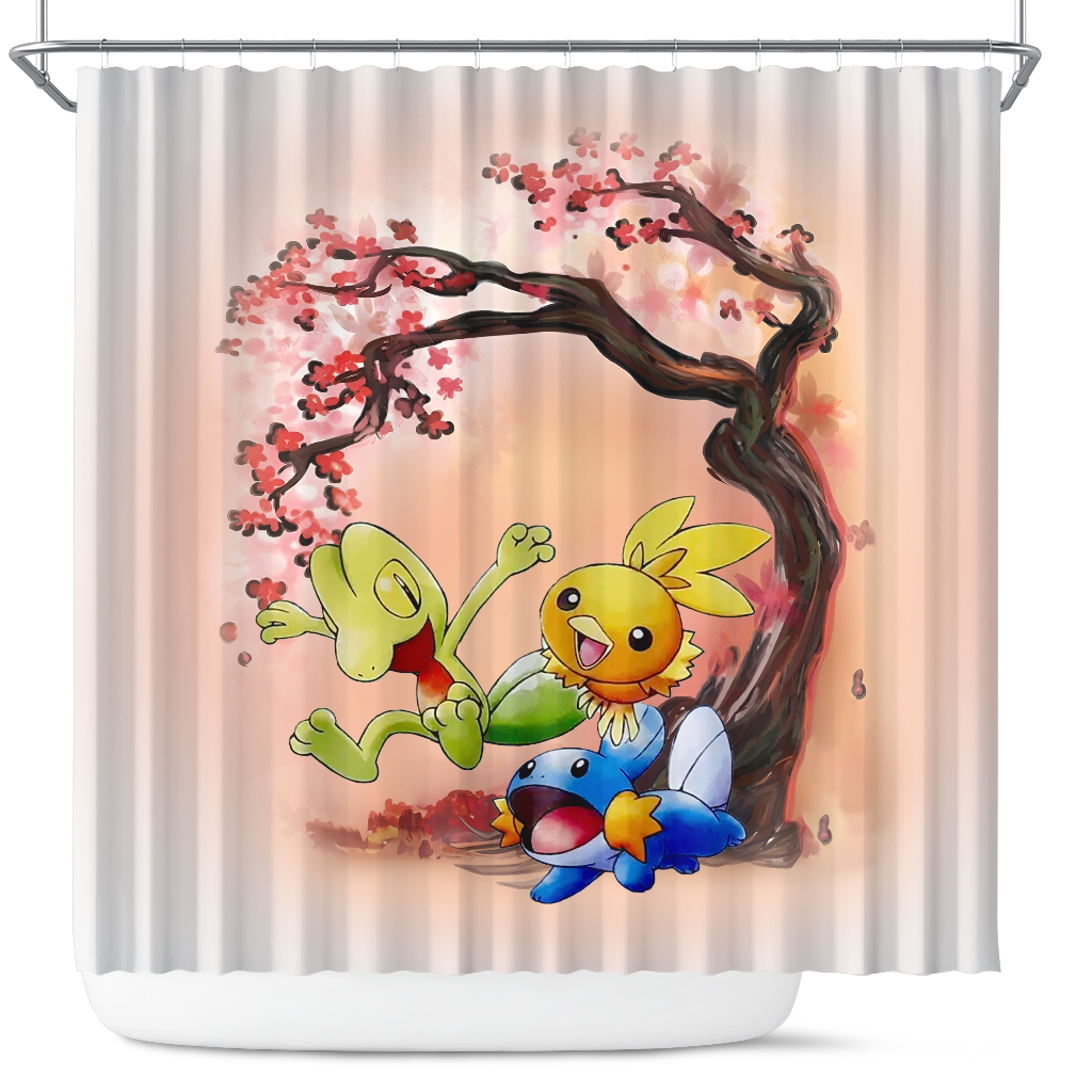 Mudkip Treecko Torchic Cherry Blossom Japan Shower Curtain