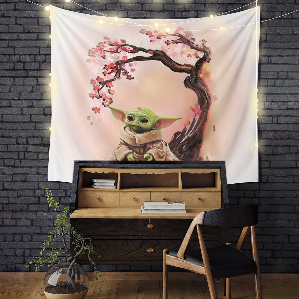 Baby Yoda Cherry Blossom Tapestry Room Decor