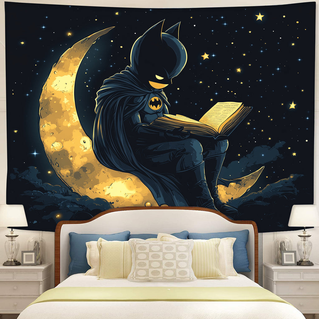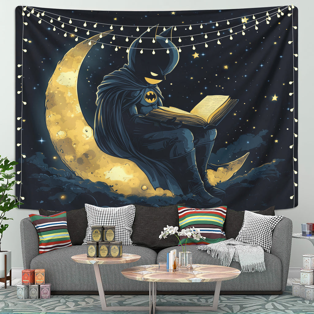 Batman Reading On A Crescent MoonTapestry Room Decor