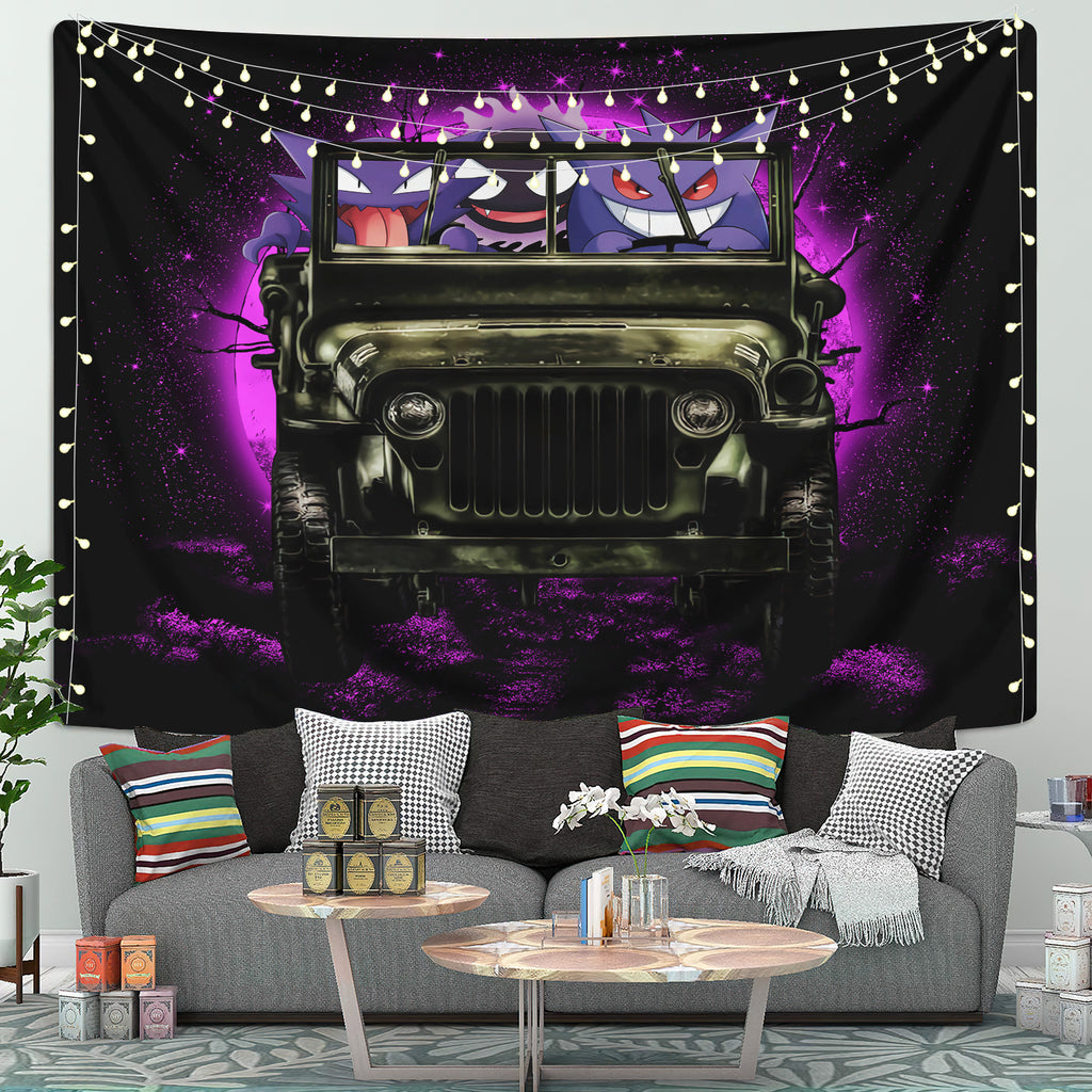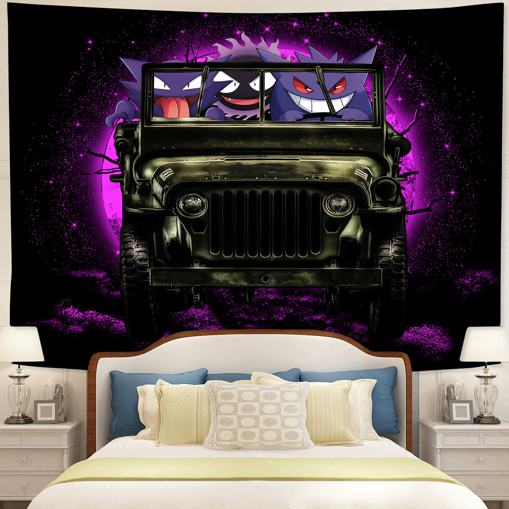Gengar Ghost Jeep Moonlight Halloween Funny Tapestry Room Decor