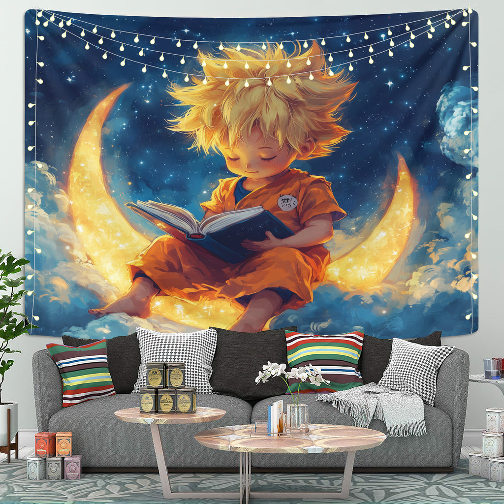 Goku Reading On A Crescent MoonTapestry Room Decor