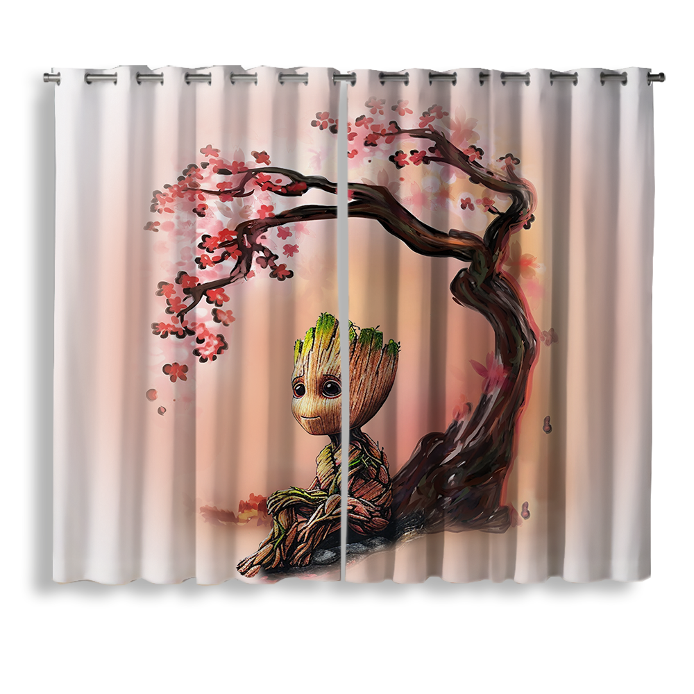 Baby Groot Cherry Blossom Window Curtain