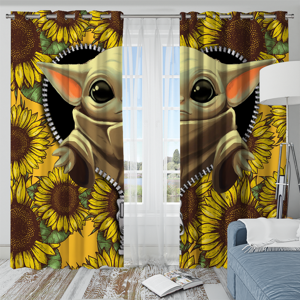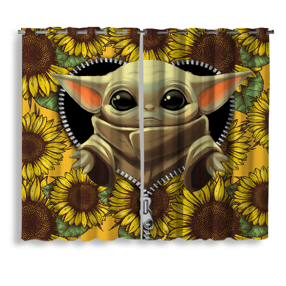 Baby Yoda Sunflower Zipper Window Curtain