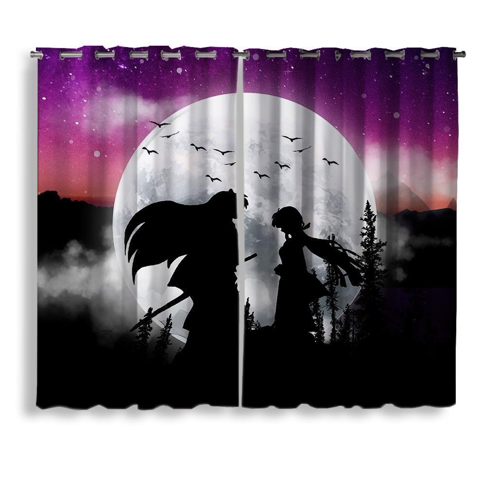 Inuyasha Couple Moon Night Galaxy Window Curtain