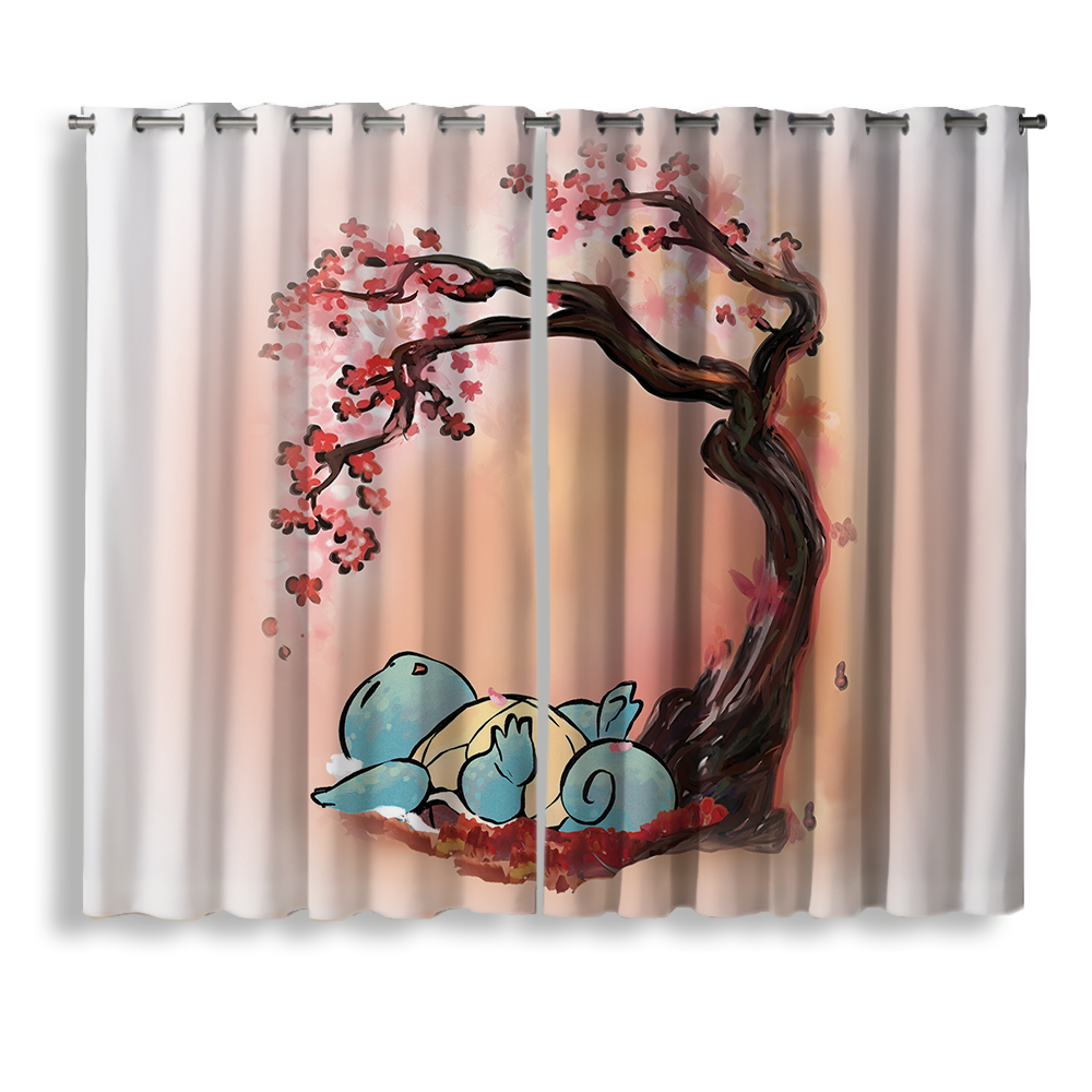 Squirtle Japan Style Cherry Blossom Window Curtain