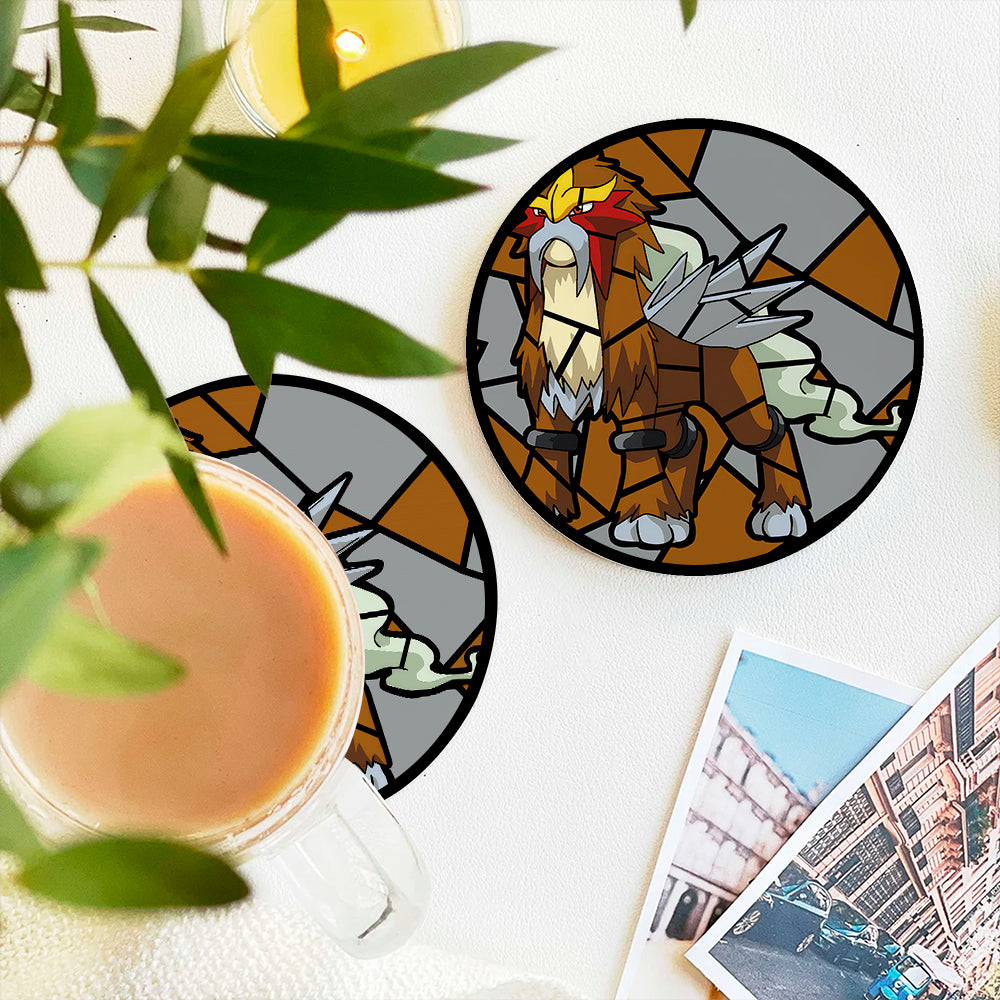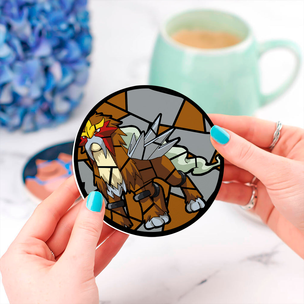 Entei Stained Glass Drink Coasters