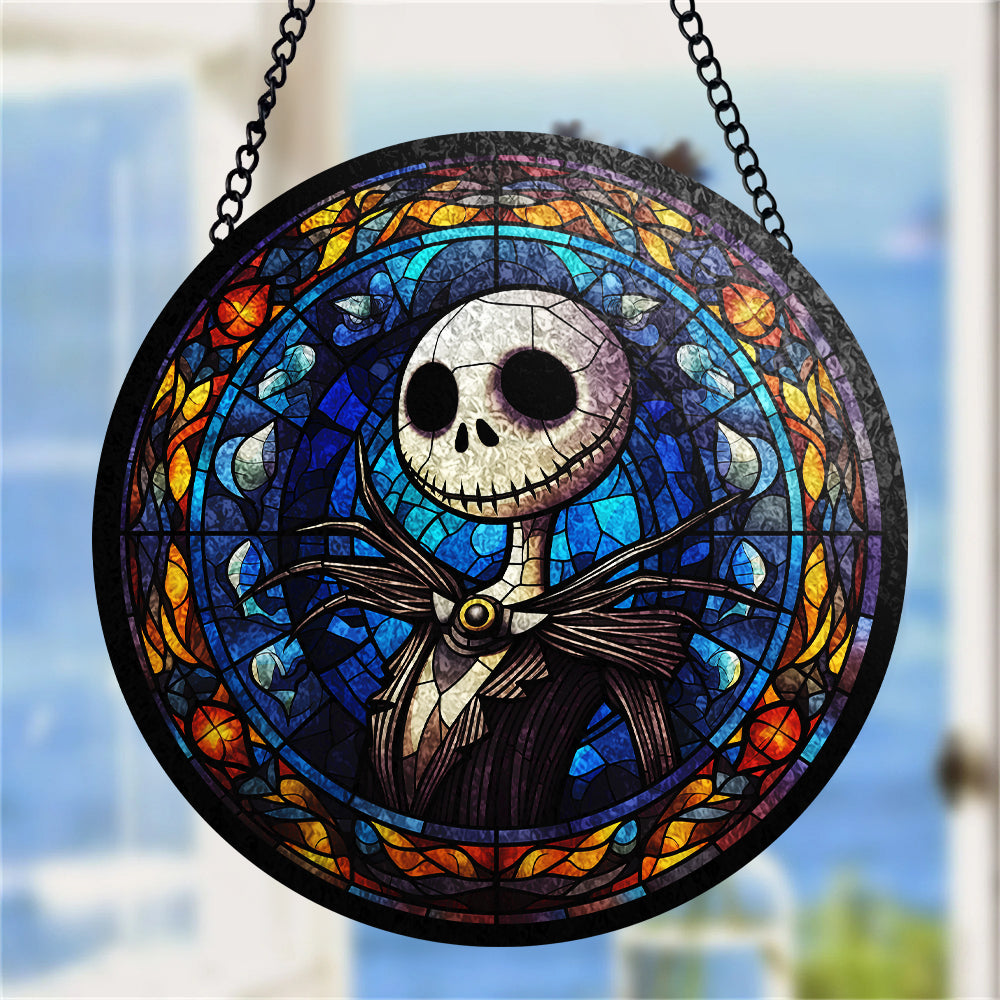 Jack Skellington Nightmare Round Stained Glass Window Hanging Panel Suncatcher