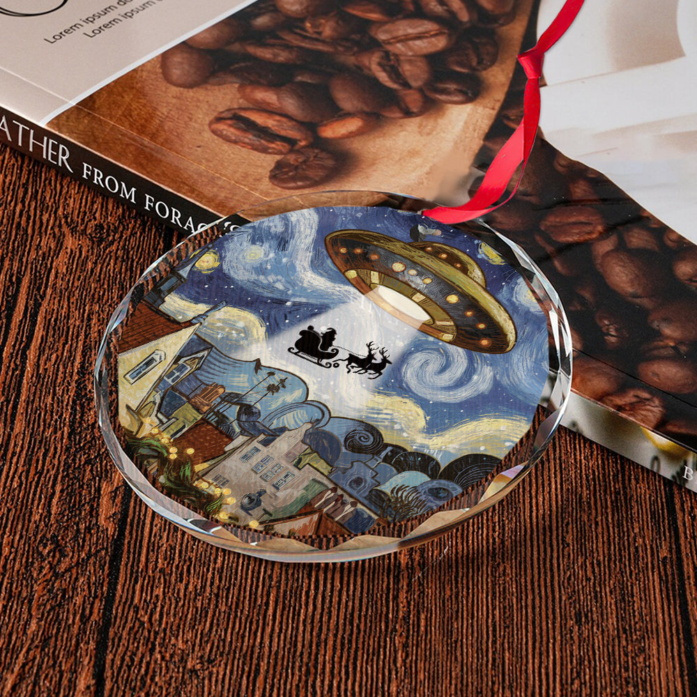 UFO A Santa Claus In Starry Night Christmas Glass Ornament